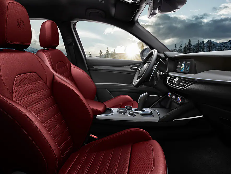 Craftsmanship, convenience and connectivity all reside inside the Stelvio and its unmistakable Italian style cabin. Available features like brushed-aluminum accents as well as our Sparco® leather-trimmed and Alcantara® race seats, offer superior style and comfort. Other driver-oriented features include our 8.8-inch Multi-Touch Display with Apple CarPlay® support and Android Auto™ compatibility.