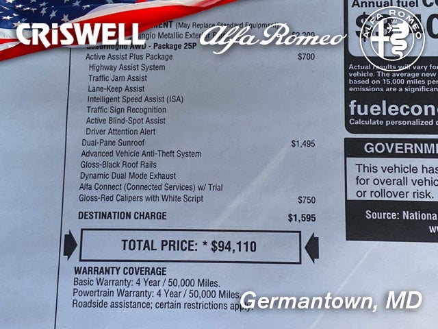 Check out our customer reviews and see why your friends and neighbors choose Criswell - We're Driven by You! Freight, sales tax, tag fees and a $800 processing charge are additional. All prices, specifications, and availability are subject to change without notice. For additional information please contact Criswell Alfa Romeo Sales Department alfasales@criswellauto.com. www.criswellalfa.com.