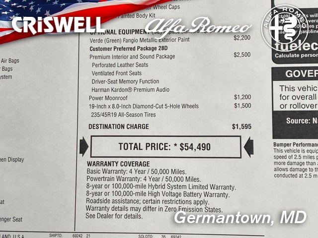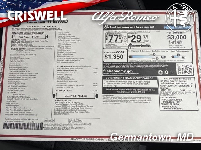 Check out our customer reviews and see why your friends and neighbors choose Criswell - We're Driven by You! Freight, sales tax, tag fees and a $800 processing charge are additional. All prices, specifications, and availability are subject to change without notice. For additional information please contact Criswell Alfa Romeo Sales Department alfasales@criswellauto.com. www.criswellalfa.com.