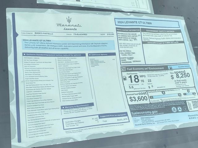 Used 2024 Bianco Maserati GT Levante for Sale in Metro Washington, D.C., VIN = ZN661XUMXRX449637