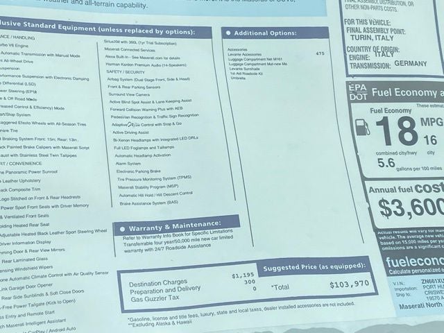 The New Vehicle Internet Sale Price (ePrice) includes applicable rebates, incentives, dealer discounts, destination/freight, and $800 Dealer Processing Fee (not required by law). Tax, title, and registration fees are additional. EPrices are valid on in-stock units only and are based on manufacturer incentive program time periods. Residency restrictions apply. Prices, specifications, and availability are subject to change without notice. Financing is subject to credit approval. Pictures are for illustrative purposes only. Offers not valid on prior sales. We make every effort to provide accurate information; please verify options and price before purchasing. For additional information please contact our internet department maseratisales@criswellauto.com. www.criswellmaserati.com.