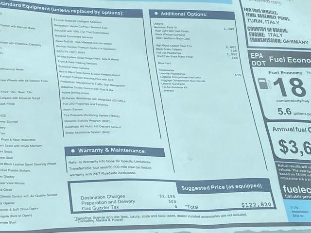 The New Vehicle Internet Sale Price (ePrice) includes applicable rebates, incentives, dealer discounts, destination/freight, and $800 Dealer Processing Fee (not required by law). Tax, title, and registration fees are additional. EPrices are valid on in-stock units only and are based on manufacturer incentive program time periods. Residency restrictions apply. Prices, specifications, and availability are subject to change without notice. Financing is subject to credit approval. Pictures are for illustrative purposes only. Offers not valid on prior sales. We make every effort to provide accurate information; please verify options and price before purchasing. For additional information please contact our internet department maseratisales@criswellauto.com. www.criswellmaserati.com.
